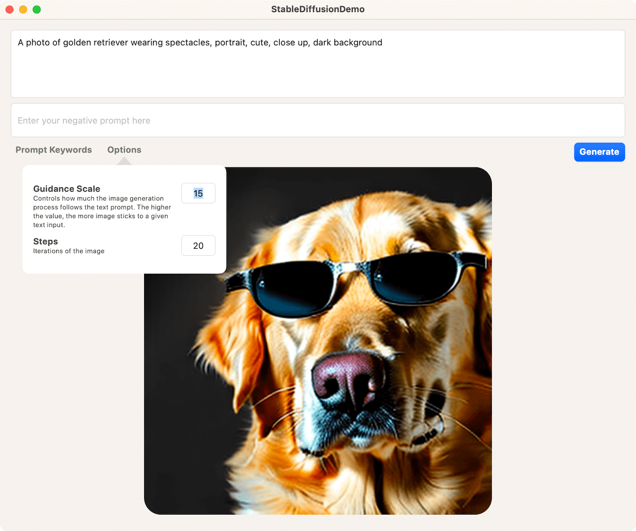 Learn how to build a Mac app for creating images from a text prompt using SwiftUI and Stable Diffusion. What’s included in the package A full tutorial walking you through the steps to build the Mac app from scratch and explain in details how to integrate Stable Diffusion with your SwiftUI projectsComplete source code for the Text-to-Image app.Lifetime access to free updates. Stable Diffusion and Core ML If you are an iOS developer looking to add text-to-image features or other creative features to your app, Stable Diffusion may be just what you need. Thanks to optimizations released by Apple’s ML engineers for Core ML, Stable Diffusion can now be used on Apple Silicon devices running macOS 13.1 or later and iOS 16.2 or later. With these updates, developers can easily incorporate Stable Diffusion into their apps, and most importantly, the model is stored locally on the device, so users don’t need an internet connection to use the AI image generation feature. The demo app and tutorial will show you every steps you need to build the text-to-images app using Stable Diffusion and SwiftUI. Most importantly, you are free to use the source code in your own personal projects.
